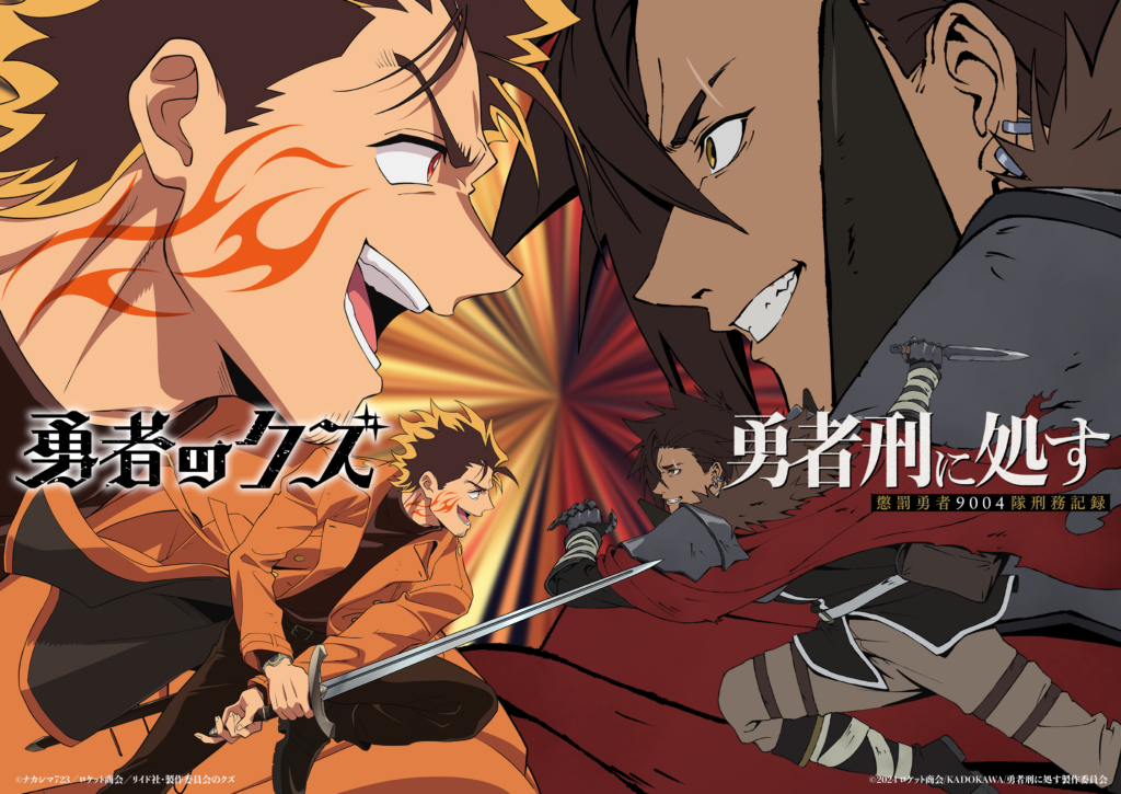 TVアニメ『勇者刑に処す』の勇者「ザイロフォルバーツ」と、TVアニメ『勇者のクズ』の勇者「ヤシロ」が向かい合う、疾走感あるコラボビジュアルを公開。