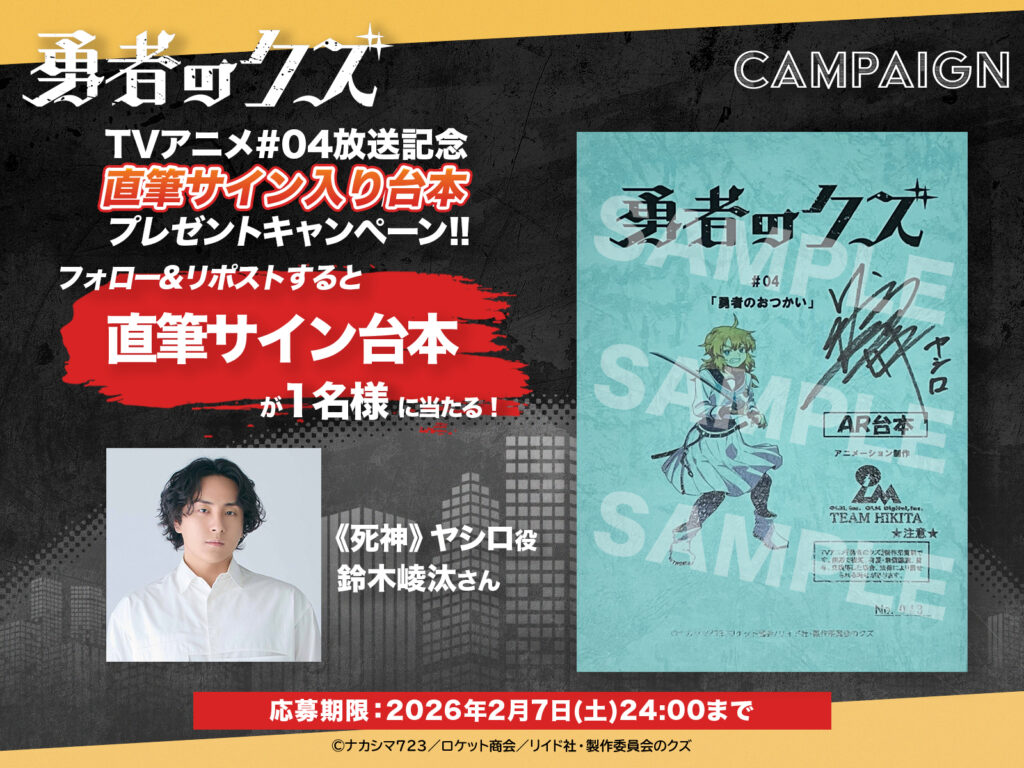 TVアニメ『勇者のクズ』公式Xをフォローして、対象ポストをリポストすることでご応募いただけます。