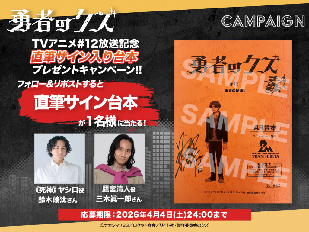 TVアニメ『勇者のクズ』公式Xをフォローして、対象ポストをリポストすることでご応募いただけます。