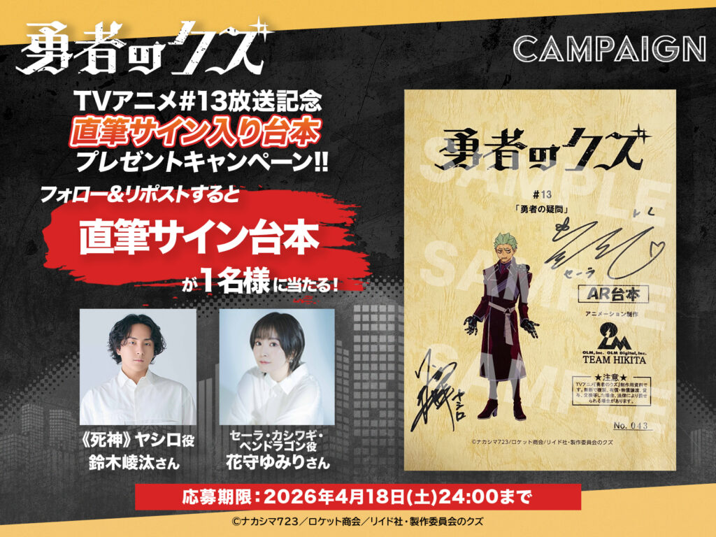 TVアニメ『勇者のクズ』公式Xをフォローして、対象ポストをリポストすることでご応募いただけます。